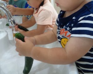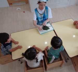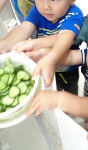 切ったきゅうりを、調理室へ~。