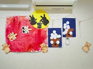 のりの感触がちょっと・・・の時には両面テープにすることで、みんな楽しくお月見団子作り♪)