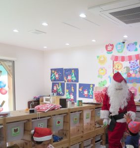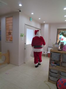 パネルシアターやマジックを見ていると、玄関からサンタが登場!!