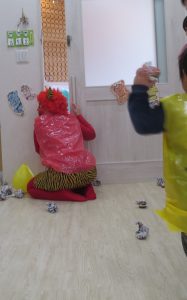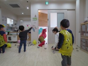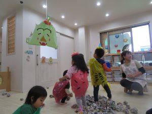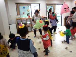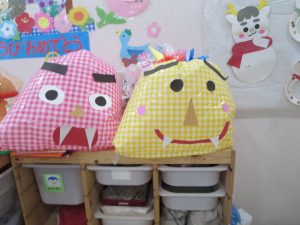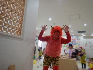顔を見た瞬間に大泣きする子、必死に豆を投げて追い出してる子、楽しくて笑いながら逃げている子、色々な表情の子ども達でしたよ。