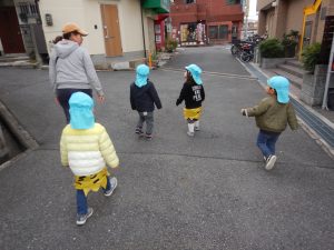 その後、2歳児はオニ探しのお散歩へ・・・