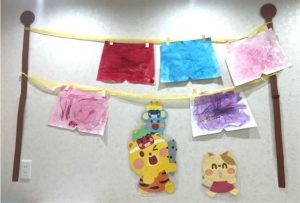 2歳児 クレパスの上から絵の具で塗ると・・・