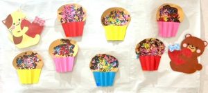1歳児 チョコソース(絵の具)の上からトッピングをかけて。