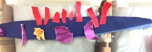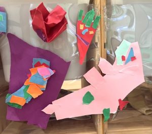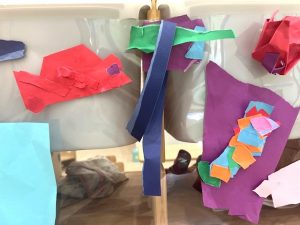 ビリビリに破った画用紙を好きなものに見立てて・・・(2歳児)