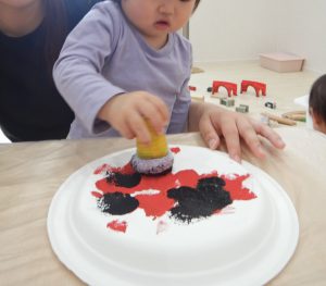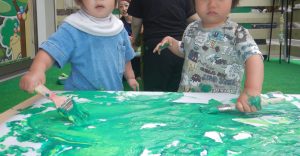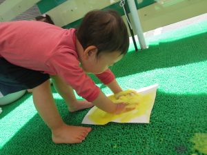 みんなでぬたくりや、筆・タンポを使っての表現~