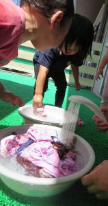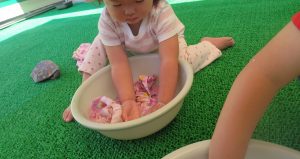 まずは、お洗濯ごっこから~ ママみたいにお洗濯ゴシゴシ!
