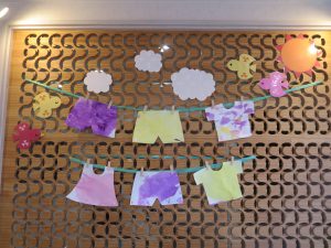 出来上がったみんなのかわいい服も、おひさまポカポカの中、乾かしました。