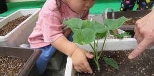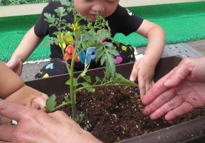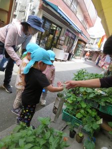 まずは・・・苗の買い付けを2歳児クラスのにじぐみさんが行ってきてくれました。
