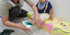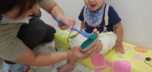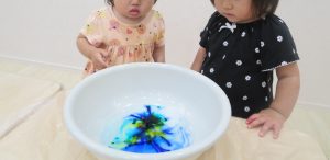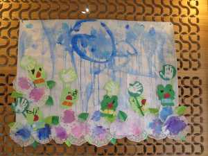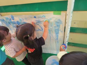 にじぐみは雨を降らせてみようとタンポで雨を表現☔