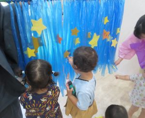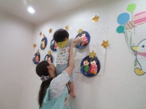 歌を歌い、七夕の為に織姫と彦星を作って、保育室に飾って楽しみにしていた子どもたち。