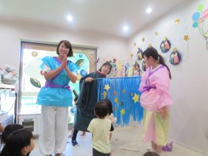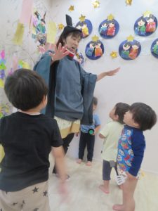 そこへ、織姫様と彦星様も登場し、保育士の楽しい寸劇を楽しみました。