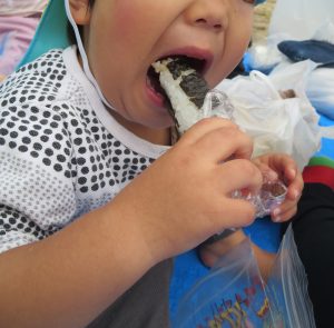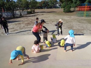 ホーム ブログ一覧 秋の遠足 秋の遠足 こころ保育園 2024.11.29 暑さも少し落ち着き、過ごしやしい時期になり秋の遠足に出かけてきました。 公園では思い思いに遊びたい遊具や、遊びたいことをして楽しみましたよ! のんびりお砂遊び~ 大きな滑り台~ どんぐりを集めて「じゃーん!」と見せてくれました。 たっぷり遊んだ後は、お家の方に作ってもらった、おにぎり? 大きなお口でがぶー!!と美味しそうに食べていましたよ! こぼれないように手にお皿にして上手に食べました。 気持ちが良い気候の中、満足のいくまでたっぷり楽しみ、帰り道も楽しみながら帰ってきました。 ブログ一覧に戻る